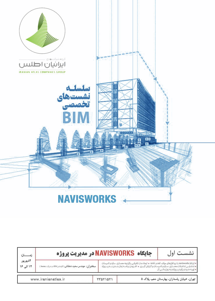نشست تخصصی BIM در هلدینگ ایرانیان اطلس با موضوع جایگاه نرم افزار Navisworks در مدیریت پروژه تهران-هلدینگ ایرانیان اطلس 1396/6/4 سمینار تخصصی در خصوص معرفی مباحث BIM در هلدینگ ایرانیان اطلس در تاریخ چهارم شهریور ماه 96 برگزار شد. در این سمینار دنیای BIM از نگاه مدیریت پروژه مورد بررسی قرار گرفت. معرفی [...]